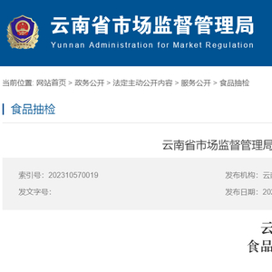 云南省市场监管局抽检495批次食品 484批次样品合格