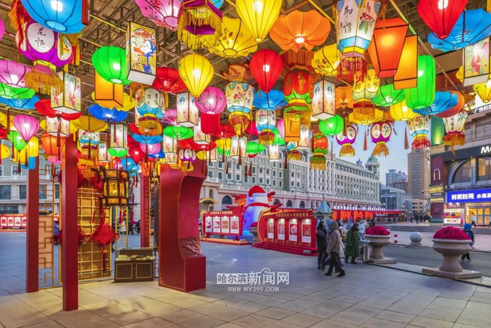 哈尔滨中央大街五彩花灯