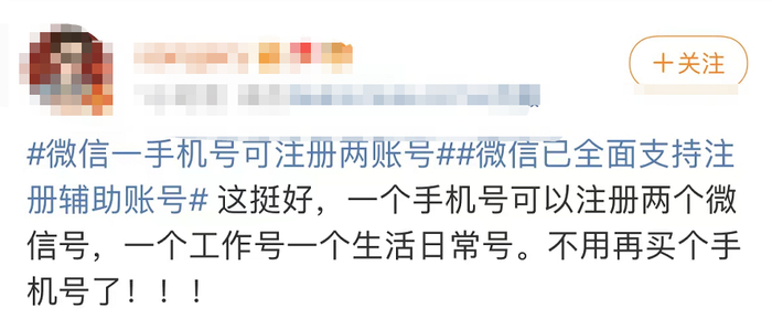 2月3日消息,微信平台显示,使用同一手机号注册辅助账号的功能已全量开放。