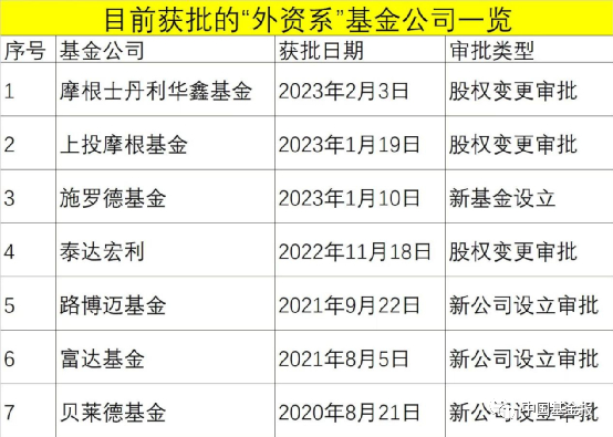 实际上,2023年以来,外资独资基金公司出炉步伐非常快,1月份还有一家外资基金新公司正式获批。在1月10日,证监会官方网站发布《关于核准设立施罗德基金管理(中国)有限公司的批复》,正式核准设立施罗德基金管理(中国)有限公司。