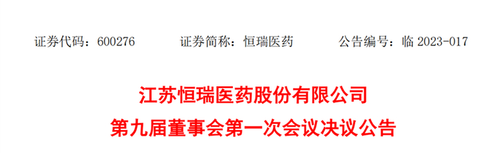 昨晚,恒瑞医药发布第九届董事会第一次会议决议公告,选举孙飘扬为第九届董事会董事长、戴洪斌为总经理。
