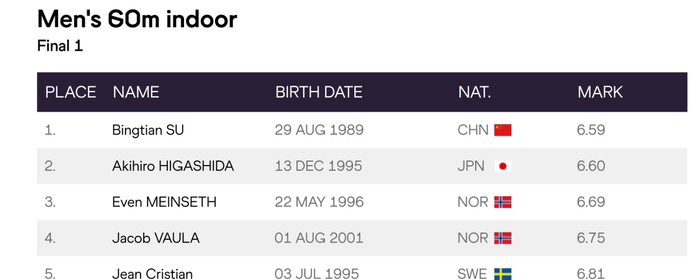 北京时间2月3日凌晨进行的世界田联室内巡回赛瑞典哥德堡站比赛中,中国“飞人”苏炳添迎来2023年首秀,他以6秒59的成绩获得男子60米冠军。