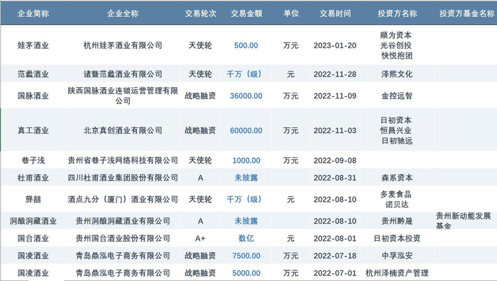 而更多的融资事件和金额,则发生在早期阶段。根据财联社创投通,2022年消费企业在天使轮、Per-A和A轮的融资占比较多。网传被禁止上市的白酒行业,也发生多起融资。在刚刚过去的2023年1月,顺为资本参与了娃茅酒业的天使轮融资。