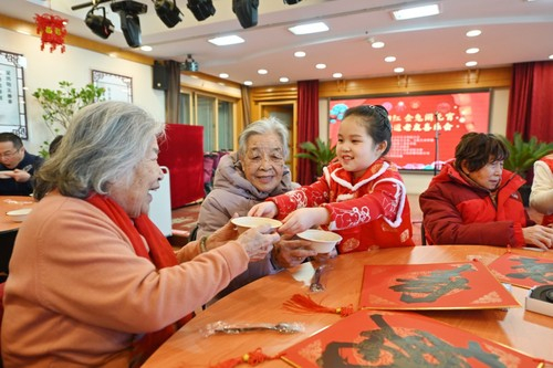 活动现场,东城书画研究会副主席兼秘书长郭宝庆、著名画家沉浮现场为老人书写寿字,东城曲协与辖区“潮商”东来顺还提供了40斤汤圆为地区100位一老一残、高龄独居老人带去温暖,小小的汤圆甜糯糯,传递着幸福,蕴含着团团圆圆的美好寓意,养老驿站社工及志愿者们将汤圆送到老人手里,他们的脸上露出了幸福的笑容,感动之情溢于言表。