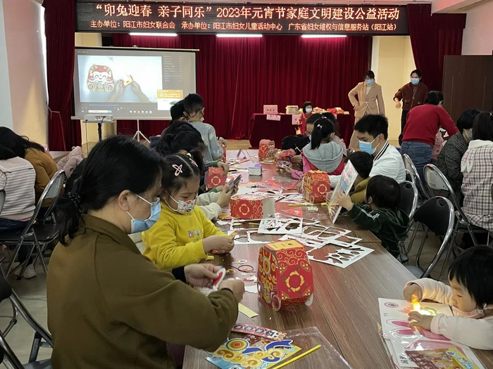 2月4日,“卯兔迎春 亲子同乐”2023年元宵节家庭文明建设公益活动在市妇女儿童活动中心举行,40多户亲子家庭齐聚一堂,了解元宵节传统文化知识,现场制作汤圆、猜灯谜、做灯笼,共度文化味十足的元宵佳节。
