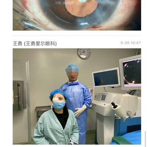 2020年5月,艾芬因视力下降,经熟人介绍到武汉爱尔眼科诊疗,被诊断为双眼并发性白内障。该院副院长王勇亲自接诊,设计并实施右眼人工晶体植入手术。