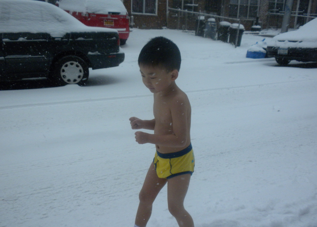 3岁美国纽约郊外零下13℃雪地裸跑(2011年)