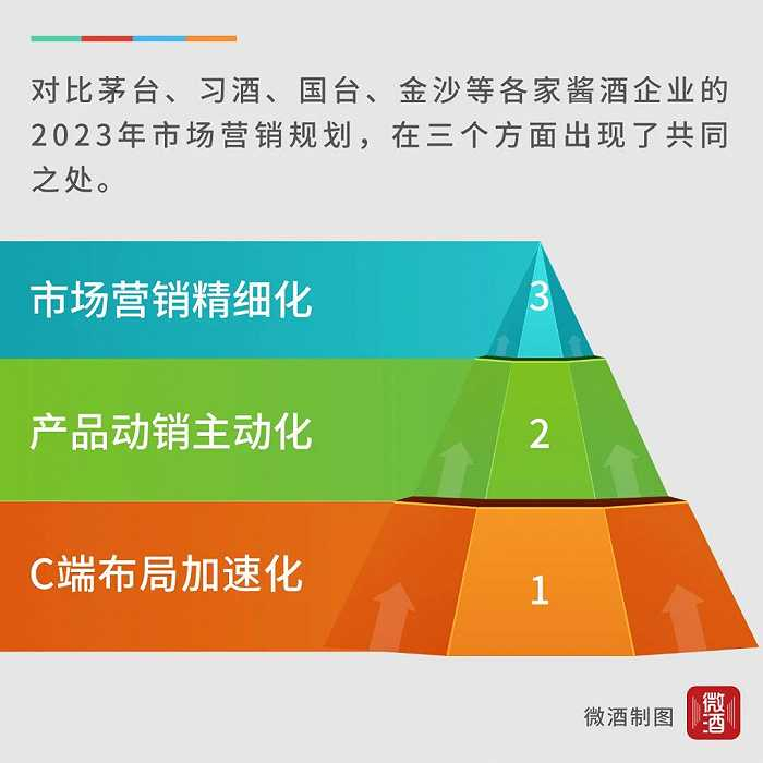 对比茅台、习酒、国台、金沙等各家酱酒企业的2023年市场营销规划,虽在具体内容上各不相同,但却在三个方面出现了共同之处。