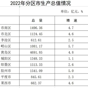 2022年青岛各区市竞速,是近年来看点最多的一次。透过2月1日青岛公布的分区市GDP,可以看出几个明显的特点:西海岸依然一骑绝尘,体量最大;崂山区增速5.7%,高居全市之首;前两年陷入挣扎的市南,正在稳住局面,实现自我救赎;位于青岛北部的莱西,势头生猛,成为黑马。