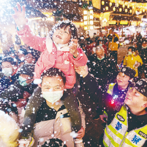 入夜,当人们在家中团圆时,翟施斌和他的同事们正默默坚守在豫园商圈。这几天上海突遇寒流,无人机一次飞行需要耗时约30分钟,飞一次下来,室外零下七八摄氏度的天气常冻得翟施斌手指发麻。但即便如此,翟施斌仍然全神贯注,一天十多次的无人机操作让他对豫园周边的情况了然于胸,也让指挥中心能够第一时间获知现场情况。
