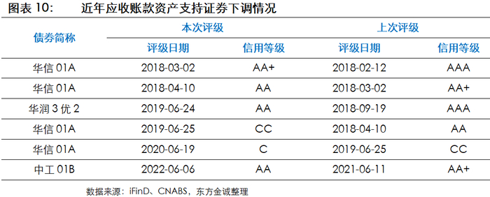 从历史来看,仅有德邦-华信应收账款第一期资产支持专项计划因核心信用主体上海华信国际集团有限公司出现违约导致优先级证券持续下调至C。