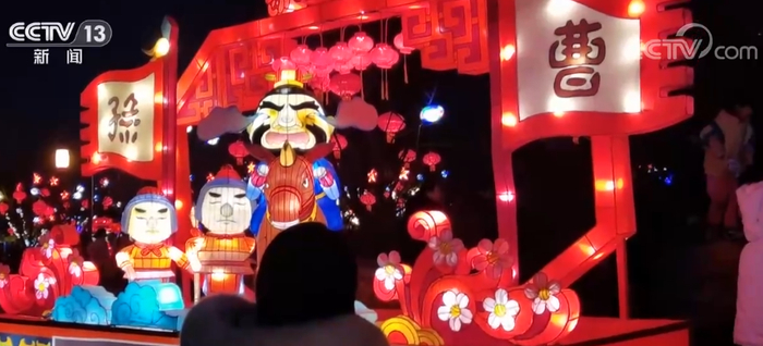夜幕降临,河南南阳卧龙岗近千盏彩灯点亮夜空,灯会以三国历史为主题,还选取了相关的歇后语、成语,以卡通人物来体现,活灵活现、趣味横生,吸引了大量游客前来拍照打卡。古风巡街表演和各类民俗展演让游客们在赏灯之余了解中国特色传统文化。