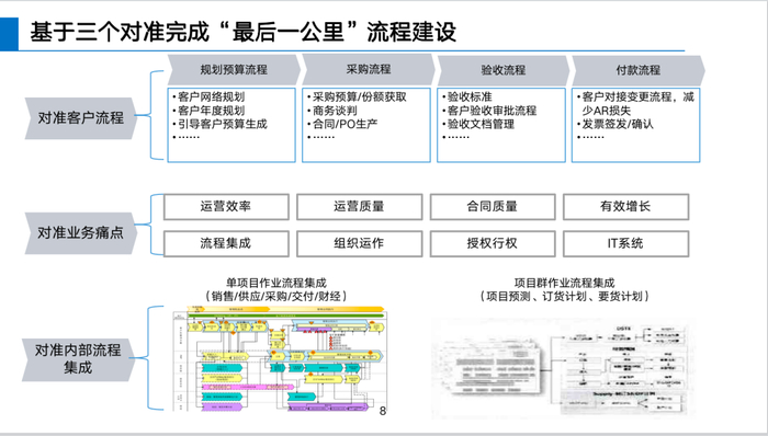 (a)横向拉通:由铁三角主导销售核心流程,打破功能部门壁垒,实现从线索到回款业务流的端到端贯通
