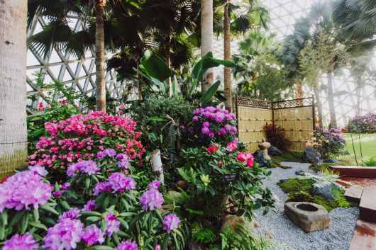 花展地点:一号门内广场、矿坑花园内、展览温室A馆、温室群共享空间的个体展馆、北美植物园内、华东区植物园内