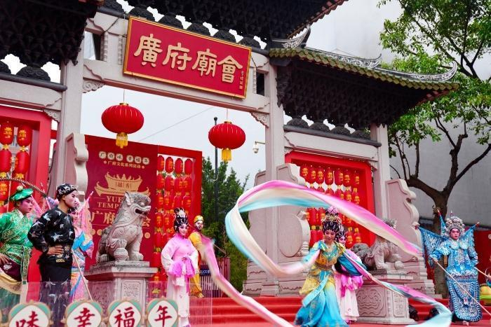 即日起连续7天,城隍庙忠佑广场作为广府庙会展演主会场,与非遗街区、北京路步行街连成一片,举办多场精品文艺演出与快闪活动。
