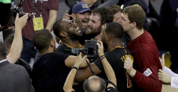 在1-3大比分落后的情况下完成绝地翻盘,成功复仇勇士夺得队史首座总冠军奖杯之后,詹姆斯和乐福在球场中央热情相拥,如此激动人心的时刻让二人甚至忘记了表情管理。肩并肩共同经历了球场上的“生死存亡”时刻,他们之间的友谊得到了升华,与其说是同甘共苦的兄弟,用出生入死的战友形容或许才更加准确。