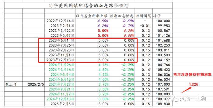 目前的两年美债的中枢在4.30%,对应的加息路径预期为: 1、未来三次加息幅度为:25+0+0;2、加息的最高点位于5.0%;3、2024年开始降息;4、每次降息25bp。