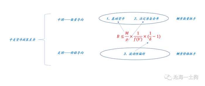 中国更加数量导向,抓手是 基础货币投放和法定准备金率,然而,美国更加价格导向,抓手是流动性偏好,即货币乘数。