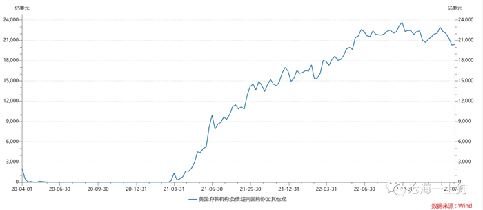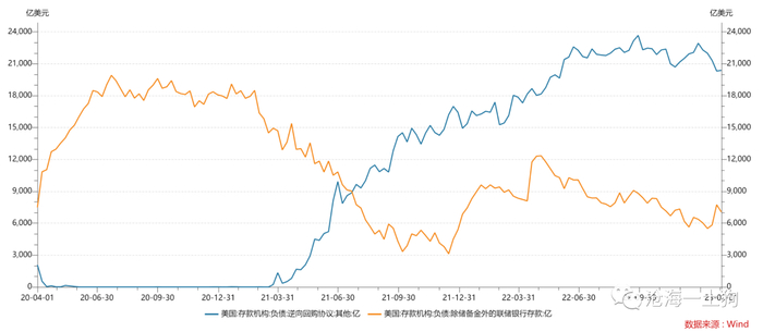 美联储加息的一个自然结果就是居民储蓄的活化,更多的非银负债变成活期存款。这又会投射到美联储的资产负债表上——逆回购规模快速扩大。
