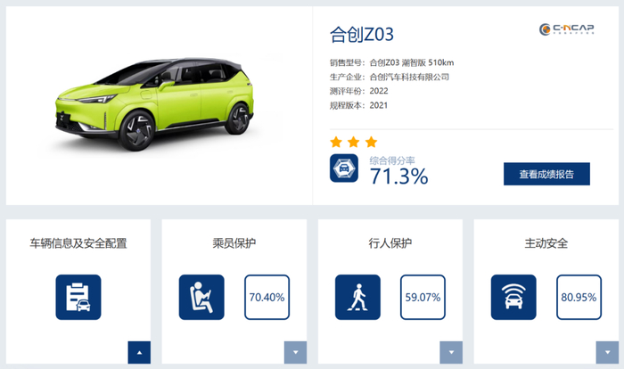 最后再提一句,中汽研公布的这批C-NCAP测评结果中,除创维EV6得1星外,另一家新势力车企合创汽车Z03的成绩也不太好,只得了3星,而合创汽车的前身则是广汽与蔚来的合资公司——广汽蔚来。