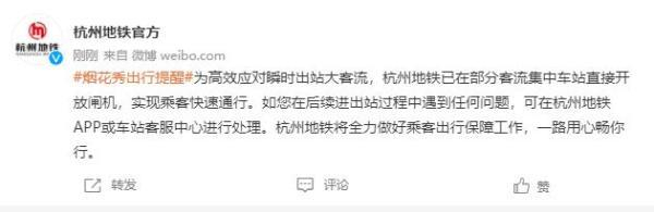 为高效应对瞬时出站大客流,杭州地铁已在部分客流集中车站直接开放闸机,实现乘客快速通行。如您在后续进出站过程中遇到任何问题,可在杭州地铁APP或车站客服中心进行处理。杭州地铁将全力做好乘客出行保障工作,一路用心畅你行。