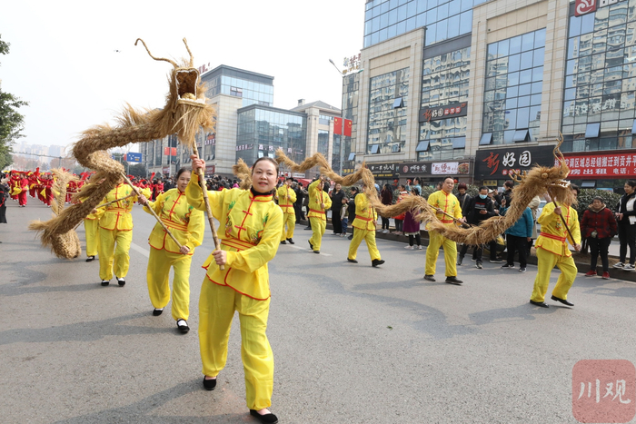 活动一开始,长长的道路两旁迅速站满了人,欢腾的草把龙舞起来,欢快的秧歌扭起来,市民们拍照留念、欢呼雀跃。