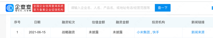 2021年,该公司旗下产品“人人视频”曾获小米集团、快手战略融资。