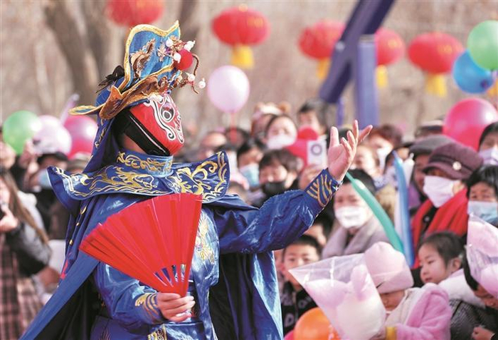 2月5日,演员为一师十团职工群众表演川剧变脸。 兵团日报全媒体记者 王志清 摄影报道