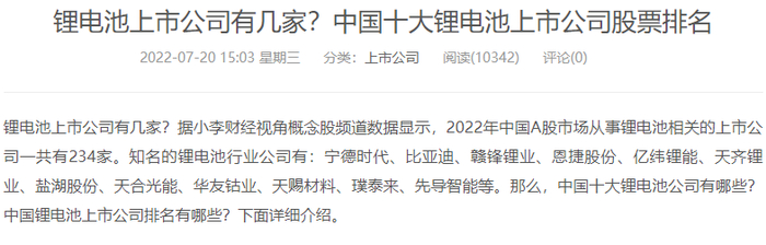 比如,这个同学说的锂电行业,小编第一反应就是宁德时代,当然如果你不知道这个行业的上市公司有哪些?那么你自行百度搜索一下就出来了,很多炒股软件也有行业版块,也可以查询。