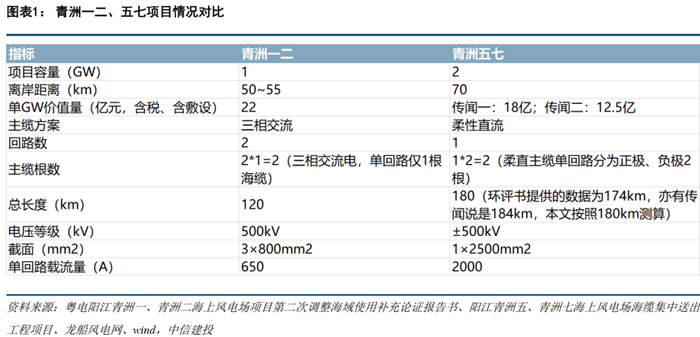 即单位功率情况下,直流使用铜截面更少;因此,对比青洲一二(22~23亿/GW)和青洲五七(12.5亿/GW),属于柔直技术迭代带来的成本优化,而非价格战。