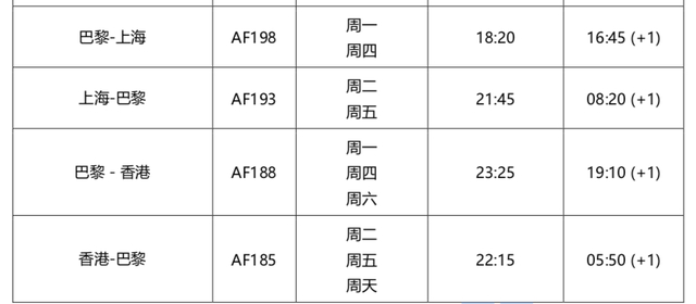 据了解,法国航空正在逐步增加巴黎戴高乐机场和中国之间的航班。法航目前运营飞往中国目的地的航班,包括北京(北京首都国际机场),每周一个航班;上海(上海浦东国际机场),每周三个航班;香港,每周三个航班。7月1日起,每日运营巴黎戴高乐机场飞往北京、上海和香港的航班。