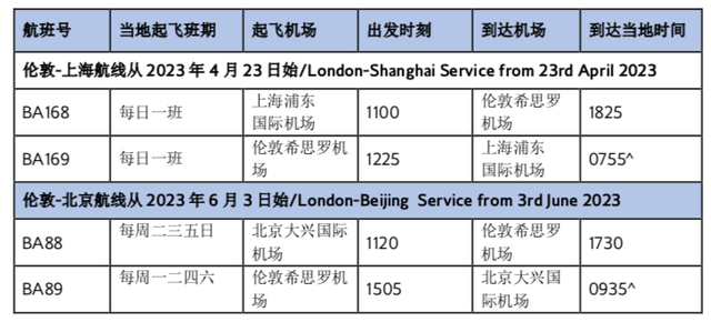英国航空公司将从4月23日重启至上海的航班,从6月3日重启至北京的航班。据介绍,伦敦希思罗机场往返上海浦东国际机场的航班将从4月23日开始运营,每天一班;往返于伦敦希思罗机场和北京大兴国际机场之间的航班将从6月3日起运营,每周四班。 目前,上海和北京的航班可以在英国航空官网预订,上海往返伦敦机票8792元起,北京往返伦敦机票9662元起。