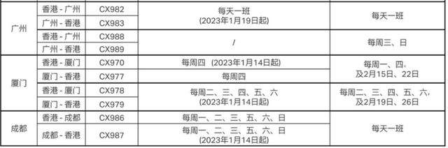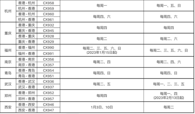 2月20日起,国泰航空将恢复每周三班往来温州与香港的客运航班服务,将是国泰航空恢复的第14条内地航线。目前,国泰航空在香港往来北京、上海、广州、杭州、南京、成都、重庆、厦门、福州、武汉、青岛、郑州及西安的航线上,提供双向载客服务。国泰航空表示,2月底前将往来两地航班数目增至每周超过200班。