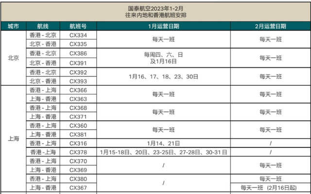 国泰航空2月20日起恢复每周三班往来温州与香港的客运航班