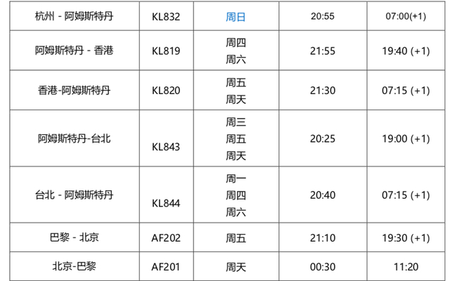 法航荷航大中国区冬季航班时刻表(2022年10月30日至2023年3月31日)。