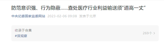 今天早上,中纪委官微突然发布题为《防范意识强、行为隐蔽……查处医疗行业利益输送须“道高一丈”》文章,直接点名医疗行业利益输送。