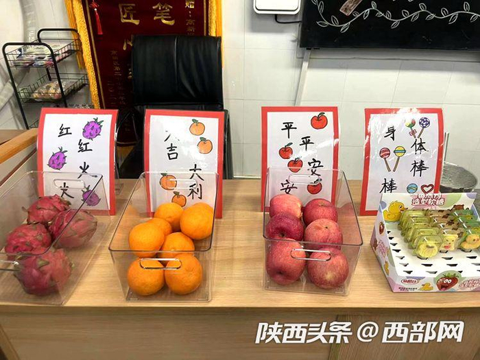 西安高新区第二十小学二年级二班为孩子们准备了“身体棒棒”“平平安安”“大吉大利”“红红火火”四份祝福。