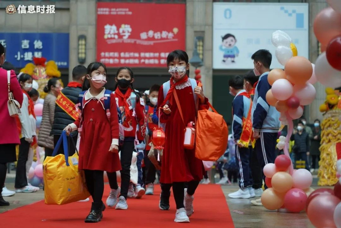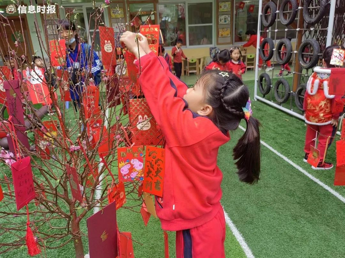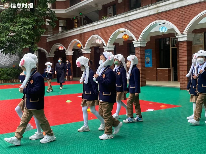 不少学校还推陈出新,以中华传统文化加上趣味活动的组合形式举办开学礼。协和幼儿园西村园区荟集舞狮、诗词、庙会、剪纸等形式的艺术、游戏节目,例如充满寓意的“摸出好彩头”和“击鼓鸣志”,还有欣赏剪纸的“大展宏‘兔’”等,类型多样,别出心裁,趣味满满。