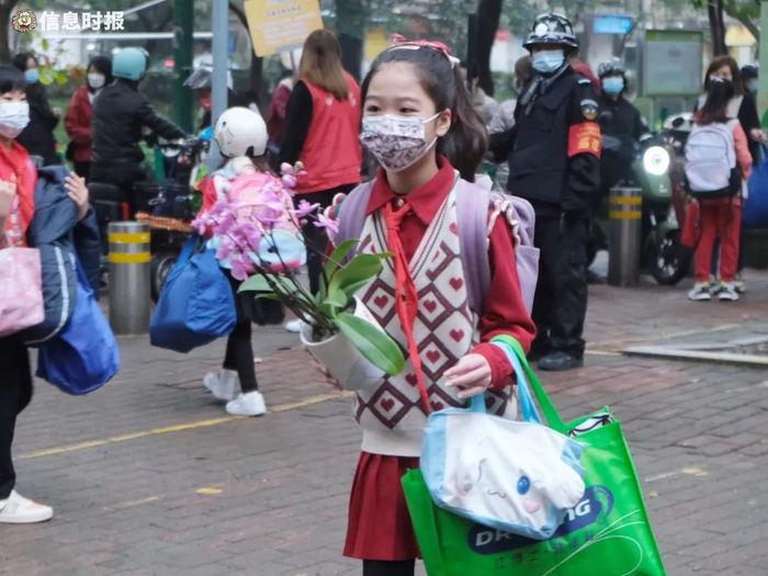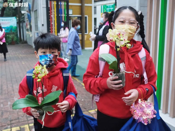 2月6日上午,荔湾区汇龙小学迎来开学第一天。孩子们元气满满、朝气蓬勃地回到了校园。记者发现,今年不少孩子在返校第一天还带着一束又一束的年花返校。原来元宵节前,汇龙小学向周边街坊发送一封来自荔湾区汇龙小学“小河长”们的信,调查年花回收意向,呼吁大家把家里年花二次利用,带到校门口涌边打造小河长生态共建科普园,扮靓驷马涌。