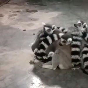 据悉,环尾狐猴来自非洲,温度低于15℃也容易像人类一样感冒。它们属于昼行性动物,并且是唯一一种在白天活动的狐猴。性情温和,平时喜欢团聚在一起成群活动,相互用梳子一样的下门齿和钩状的爪来理毛、修饰,或在树上玩耍、觅食,有时也在地上游荡,还经常表现出种种惊险的动作。