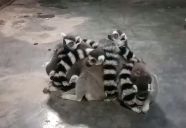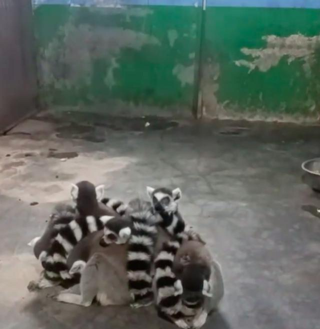 非洲狐猴疑似太冷在动物园抱团取暖,拍摄者:连个垫子都没有,园方回应:有空调,游客没注意