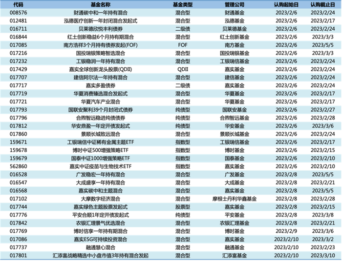 本周已发布认购信息的新发基金如下表所示。