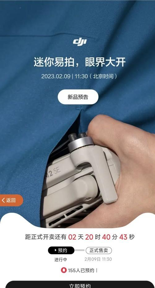 2023年2月6日消息,今天大疆宣布将于2月9日11:30发布新品,新品口号为「迷你易拍,眼界大开」,从图中可以看到,新品预计为 DJI Mini2 SE无人机。