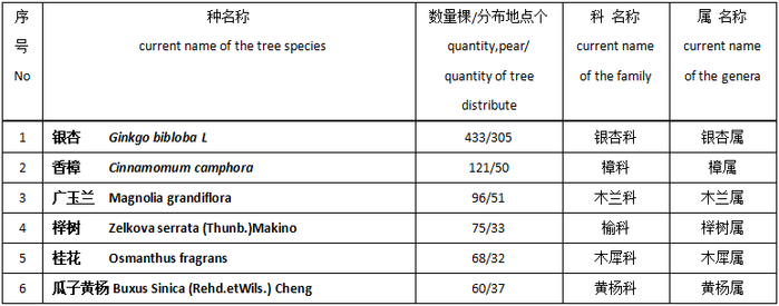笔者根据“上海绿化局网”古树名木资料,用简单的数量统计方法进行整理分析,以求找出适合全上海市普遍适用的树种,作为当地可以推广应用树种的依据,为城市绿化储备提供良好树种的基础材料。