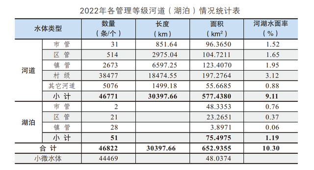摸清了“家底”,河湖的管理责任就能具体落地。分析这46771条河道和51个湖泊不难发现,大多数都是镇(乡)管河道或村级河道,责任落实到了基层。