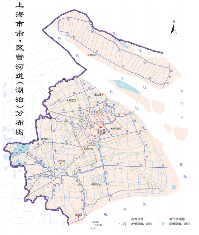 按照管理等级划分,上海共有市管河道31条,长851.64公里;区管河道514条,长2975.04公里;镇(乡)管河道2673条,长6597.25公里;村级河道38477条,长18474.55公里。