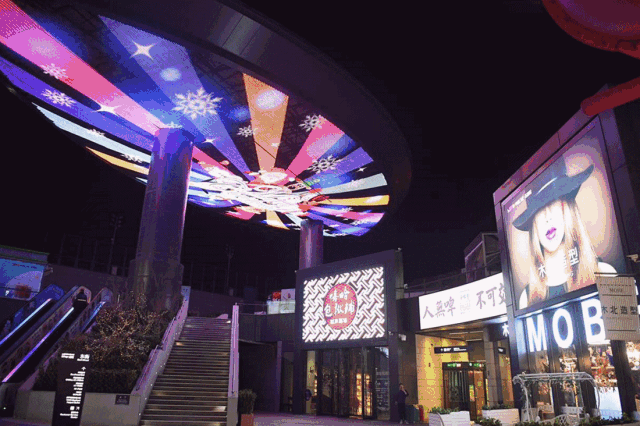 除了业态布局,为了营造更好的夜间娱乐氛围,街区在灯光亮化方面下了很多功夫,夜晚的华熙LIVE·五棵松,霓虹闪烁,流光溢彩,设立多处网红打卡点,如地铁连廊鲜花墙、爱情广场、哈哈镜等。另外,街区坚持每家酒吧每晚都有精彩演出,并邀请不同类型的歌手和街头艺人在街区的不同区域进行现场表演,不仅为顾客制造了更好的逛街氛围,也为素人歌手提供了展示自己的空间。高水准的表演活动和优质的环境,也让华熙LIVE·五棵松成为了京城热门打卡地。