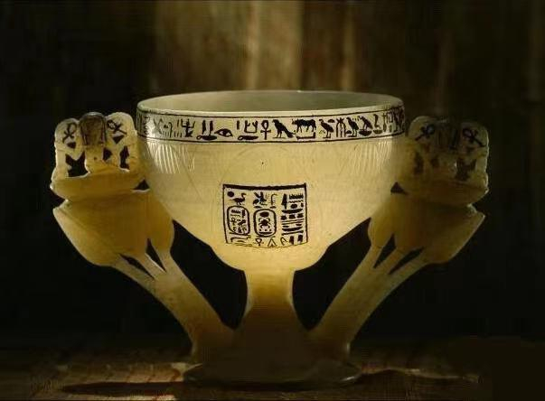 在图坦卡蒙墓中有许多白玉般美丽的雪花石膏器物,其中有一只精巧的水杯,形如一朵盛开的莲花,两边的莲苞束为杯子的手柄,手柄顶端为海赫神。图坦卡蒙的名字刻在杯子的一侧。杯沿上有这样一行文字:“……你将在此历经千年,眷恋着底比斯城,面向北风端坐,眼中满是愉悦。”