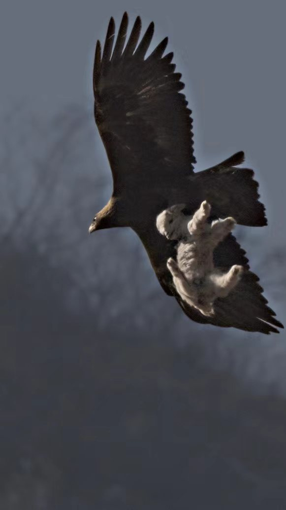 此次被金雕捕食的羊,正是村民姜永如在山上放养的绒山羊。被金雕抓走的羊,姜永如目测是刚养了三四个月的羔羊,“估计有二三十斤,太大的羊,雕抓不动。”