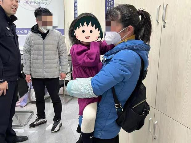 在小区外的银行门口,热心群众发现了小慧,立即下车询问情况,并报了警。龙虎塘派出所在接报警后,民警出警将小女孩带回派出所。